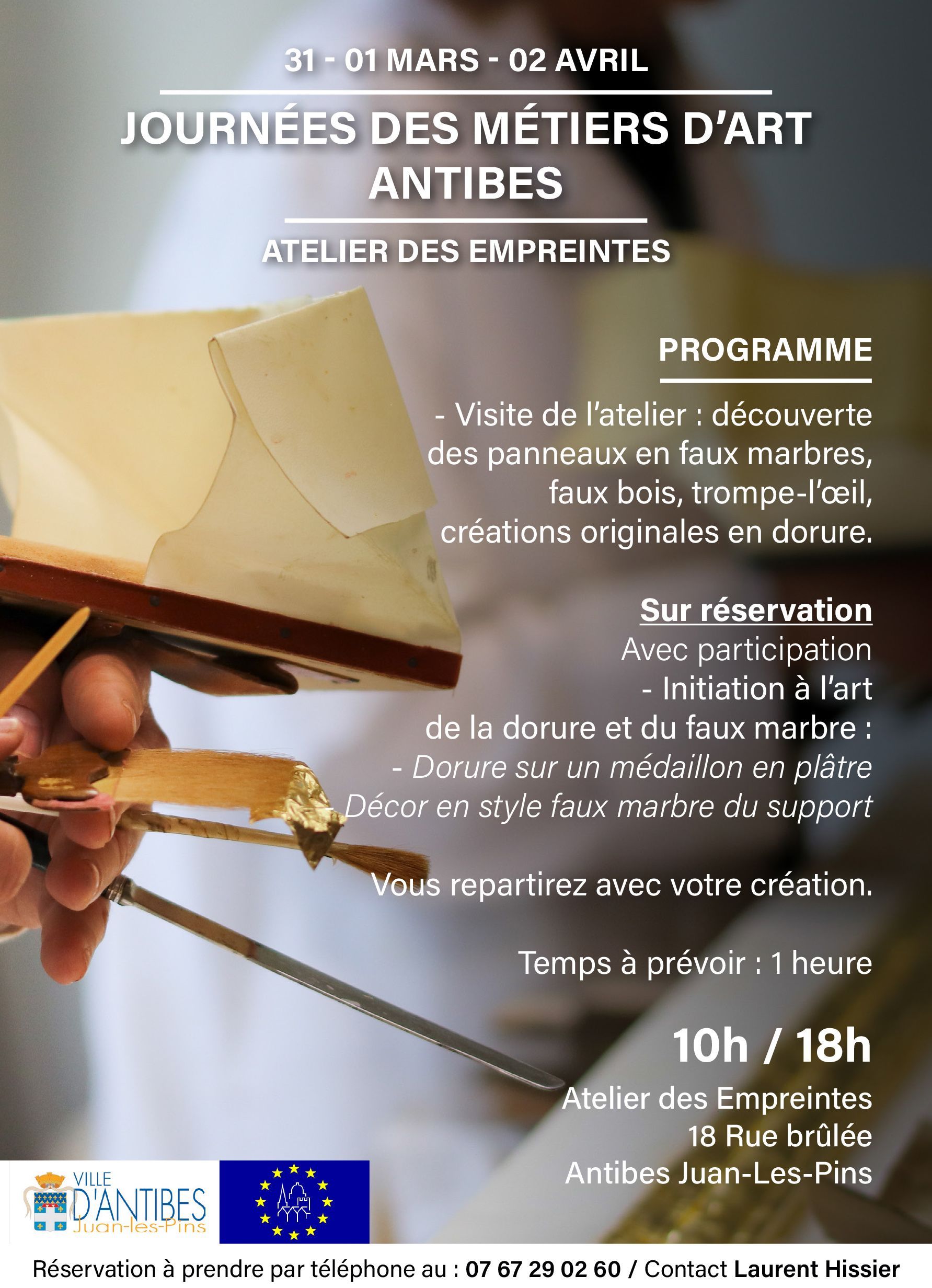 🔷 Du mercredi 7 au dimanche 11 avril 2021, l'atelier d'Antibes  sera ouvert au public  pour les JEMA (Journées Européennes des Métiers d'Art)